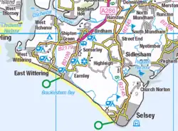 The peninsula formed the main part of the Hundred of Manwood, in the Rape of Chichester.[5] The Rape was a county sub-division peculiar to Sussex.[6]