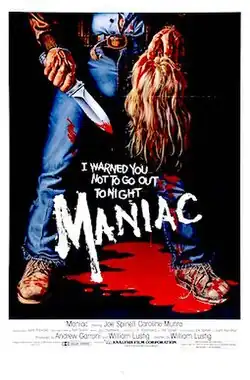 Maniac is a 1980 American psychological slasher film directed by William Lustig and written by C. A. Rosenberg and Joe Spinell. It stars Spinell as Frank Zito, an Italian-American serial killer residing in New York City who murders and scalps young women.