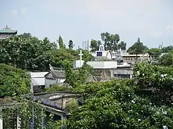 Built in 1878, the Chong Hock Tong Temple (Chinese: 崇福堂; pinyin: Chóngfútáng; Pe̍h-ōe-jī: Chông-hok-tông), prior to its demolition in 2015,[5] was the oldest pre-War Chinese memorial temple in Manila. Its architecture was reminiscent of (but not as elaborate as) southern Fujian temples, as well as those in Indonesia, Singapore, Malaysia, & Taiwan, with their colorful friezes and uniquely upturned eaves; a unique feature were its lateral belfries appended at each end, an obvious Christian influence.[2]