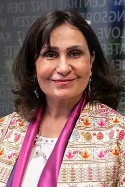 Manizha Bakhtari (Persian: منیژه باختری) is an Afghan diplomat, author and journalist renowned for her contributions to the country's literary and political landscape. She is currently the Afghan ambassador to Austria, leading one of Afghanistan's most significant diplomatic representations. Bakhtari previously served as the country's ambassador to the Nordic countries (Norway, Sweden, Denmark, Iceland and Finland), as well as the chief of staff for Afghanistan's Ministry of Foreign Affairs.