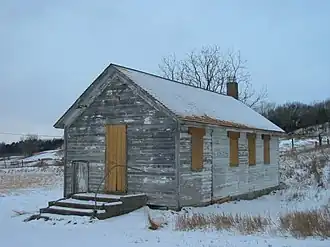 Mann School No. 2, also known as Sioux Township #2, is a historic building located west of Moorhead, Iowa, United States. Built in 1884, the building is a simple rectangular frame structure with a gable roof. Originally three bays long, an addition in the 1920s that added a cloak room and internal stairway to the basement, extended it one more bay. Located in the Loess Hills, this school differed from one-room schoolhouses on the prairie, in that it was located near the center of a cluster of families rather than at the center of four sections.[2] Parents of the students who were educated here took responsibility for the upkeep and maintenance of the building and grounds. The building remained in use as a school until 1945 when the teacher expectantly left. Enrollment had been low to begin with so the district sent the students to a neighboring rural school and then to Moorhead. The building continued as a polling place after the school was formally closed in 1945. It was listed on the National Register of Historic Places in 2001.[1]