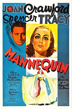 Mannequin is a 1937 American drama film directed by Frank Borzage and starring Joan Crawford, Spencer Tracy, and Alan Curtis. Crawford plays Jessie, a young working class woman who seeks to improve her life by marrying her boyfriend, only to find out that he is no better than what she left behind. She meets a self-made millionaire with whom she falls in love despite his financial problems.