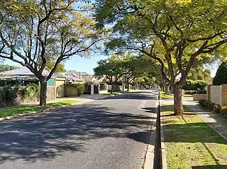 ![]() Benjamin St in Manningham, showing the many Jacaranda trees in the area. | |||||||||||||||