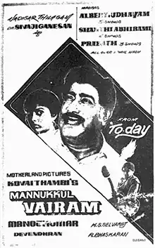 - ^ "Mannukkul Vairam". The Indian Express. 12 December 1986. p. 3. Retrieved 25 February 2019 – via Google News Archive.