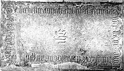 - Richard Chichester (1423–1496), (son), was a minor aged 14 on his father's death. He served as Sheriff of Devon in 1469 and 1475. He married firstly Margaret Keynes, daughter of Nicholas Keynes of Winkleigh; secondly Elizabeth Sapcott (died 1502), who survived him, daughter of Sir John Sapcott. He died 25 December 1496[10] and his Inquisition post mortem was taken in 1498. His tomb slab exists set into the floor of the chancel aisle of Pilton Church. Their second son Richard Chichester married Thomasine de Hall (died 1502),[14] the heiress of Hall, in the parish of Bishops Tawton, and founded that line of the family, whose descendants (in a female line) still own the estate in 2012. His heir was his grandson John Chichester (died 1537/8). He was predeceased by both his sons:
