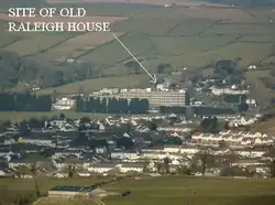 The historic manor of Raleigh, near Barnstaple and in the parish of Pilton, North Devon, England, was the first recorded home in the 14th century of the influential Chichester family of Devon. It was recorded in Domesday Book of 1086 together with three other manors that lay within the later-created parish of Pilton. The manor lies above the River Yeo on the southern slope of the hill on top of which stand the ruins of the Anglo-Saxon hillfort called Roborough Castle.[2] Part of the historic manor of Raleigh is now the site of the North Devon District Hospital.