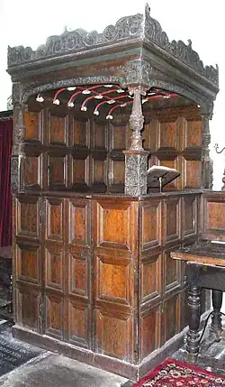 The "Bourchier Pew" (or "Manorial Pew") in the north transept was made in about 1550 in Franco-Flemish early Renaissance style,[18] and decorated with Bourchier knots, it was used by the lords of the manor of Tawstock. The unusual and small manorial pew [a] has been mistaken for a confessional due to its box-like appearance.