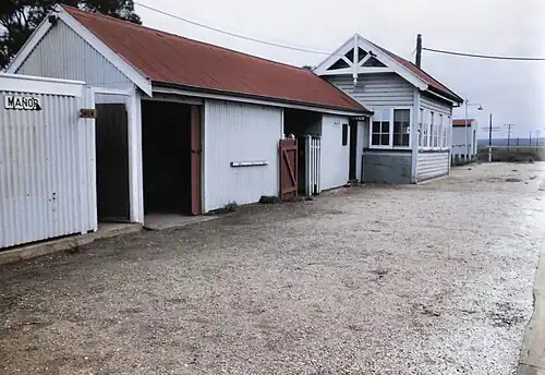 A signal box was opened at the site in February 1911, controlling a new crossing loop on the single line between Werribee and Little River.[1] Passenger and goods facilities were provided in August 1914.[1][2] At the start of the 1920s, the Victorian Railways opened a bluestone quarry 1.5 kilometres south of the station, to provide track ballast. The quarry was served by a long siding, parallel with the main line, leading from station yard.[1] The quarry probably ceased operating in the 1930s.