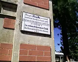 After the escape, the military authorities decided to destroy the building to hide evidence of human rights abuses that had occurred there. The mansion was set on fire and dynamited, leaving only an unstable façade, and the prisoners were sent to various penal units.[1] In 1985, soon after the restoration of democracy, Morón mayor Norberto García Silva oversaw the recovery of the property through a ten-year loan from the Municipality of Buenos Aires to the Municipality of Morón, to be assigned to the construction of a sports center called "Gorki Grana".[3][5] On the day of the inauguration, the mayor affirmed: "Where there was darkness, now life must spring forth."
