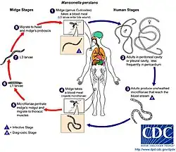 - ^ a b c d e f CDC "Filariasis. Life Cycle of Mansonella perstans" (2009).