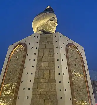 A bronze bust of Abu Ja'far al-Mansur was erected in the Mansour district in 1979 and was designed to serve as a link between Iraq's illustrious past and its bright future.[21] The work of Iraqi sculptor, Khaled al-Rahal, the statue base was bombed by unidentified armed men on October 18, 2005, the day former president Saddam Hussein was put on trial.[22] The base was later rebuilt, and the statue was reattached in May 2008.[23]