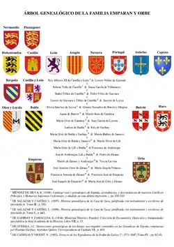 The Emparan y Orbe family, lords of Azpeitia and Ermua and Marquises of Valde-Espina was directly descended from the houses of Loyola, Balda, Butrón, Haro and Burgundy and through this family line to the monarchs of Asturias, Castille, Leon, Navarre and Portugal, the French Capetian dynasty, the English House of Plantagenet, the German Hohenstaufens, the Kingdom of Scotland, the House of Normandy and the House of Uppsala.