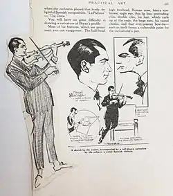 He returned to Spain and continued painting, entering competitions, and completing two more self-portraits. He also sought out the company of important figures in the art world such as the painter Ignacio Zuloaga, the sculptor Francisco Asorey, and many others. He had earlier met Joaquín Sorolla.[1] In 1940 he made an extensive series of caricatures of his friends: Fritz Kreisler, José Iturbi, Eugène Ysaÿe, Pablo Casals, Carlos Chávez, Andrés Segovia, Arthur Rubinstein, Lucien Capet, Ricardo Viñes, Jacques Thibaud, and others.[1]