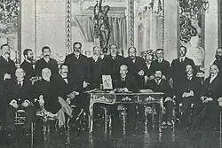 According to some scholars the 1907 success elevated Catalan Carlism from "marginal phenomenon restricted to Pyrenean foothills" to an entirely new stature.[107] Solferino himself assumed a new tone when speaking in the Senate; in 1908 the national press reported him as declaring Spain a confederation[108] and confirming that "Cataluña es un Estado y España una Confederación".[109] In return he was accused of having been anti-Spanish.[110] Though in 1909 Solidaritat Catalana fell apart, Solferino and Junyent kept advocating rapprochement with the nationalists.[111] This stance produced differences between Solferino and Janer; as a result, in 1909 the former resigned from the provincial Barcelona jefatura.[112]