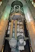 After final stages of manufacturing, systems testing and launch checkout, all ISS components are loaded into a payload transfer container in the shape of the Space Shuttle payload bay. This container safely carries the component in its launch configuration until it is hoisted vertically at the launch pad gantry for transfer to the Space Shuttle orbiter for launch and in-orbit assembly of the International Space Station.[26]