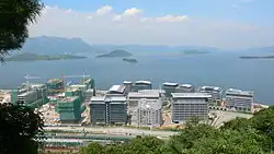 The finance and real estate industries bloomed in the 1990s. However, the dependence on such industries caused a loss of competitiveness between products produced by Hong Kong-based manufacturers and those from the international market. The other Asian Tigers had developed capital-intensive industries such as crude oil, computers and heavy industries.[42] As a result, the government of Hong Kong has tried to develop knowledge-based, high-technology and higher-value-added industries. High-technology training programmes have been provided as well as courses related to information technology and biotechnology. Land was used for high-technology industries, notably Cyberport. Research centres have been set up to support such industries, notably the Hong Kong Science and Technology Park.[39] High-technology exports took up one-third of Hong Kong's total exports in 2005.[43] Manufacturing workers who are unskilled in other areas are unemployed as a result of industrial relocation.[37][44] To aid them, the government provided retraining programmes, allowing them, especially those in the tertiary industry, to get new jobs.[38]