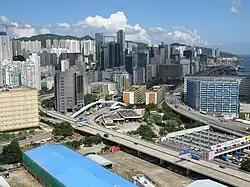 More industrial estates and districts were created. This was because there was insufficient land for industrial development, leading to a rise in land rent. In 1971, every square metre of industrial land was sold at HK$1,329.09 at auction.[21] In this period, industrial areas were spread all over the city, especially in the New Territories, where new towns, such as Tuen Mun and Shatin, were built. A hire-purchase plan was also adopted to relieve pressure from buying land for industrial uses.[22]
