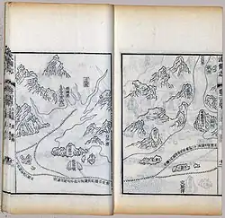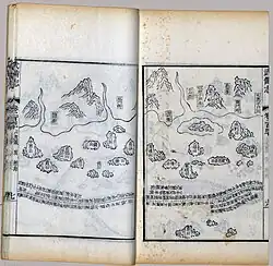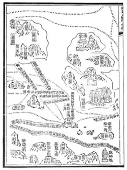 Mao Kun map, usually referred to in modern Chinese sources as Zheng He's Navigation Map (traditional Chinese: 鄭和航海圖; simplified Chinese: 郑和航海图; pinyin: Zhèng Hé hánghǎi tú), is a set of navigation charts published in the Ming dynasty military treatise Wubei Zhi.[1] The book was compiled by Mao Yuanyi in 1621 and published in 1628; the name of the map refers to his grandfather Mao Kun (Chinese: 茅坤; pinyin: Máo Kūn) from whose library the map is likely to have originated. The map is often regarded as a surviving document from the expeditions of Zheng He in addition to accounts written by Zheng's officers, such as Yingya Shenglan by Ma Huan and Xingcha Shenglan by Fei Xin. It is the earliest known Chinese map to give an adequate representation of Southern Asia, Persia, Arabia and East Africa.[2]