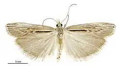- ^ a b Gaskin, David E. (1987). "Supplement to New Zealand Crambinae (Lepidoptera: Pyralidae) — corrections, description of females of two species, and notes on structure, biology, and distribution" (PDF). New Zealand Journal of Zoology. 14 (1): 113–121. doi:10.1080/03014223.1987.10422688. Retrieved 3 May 2018.
