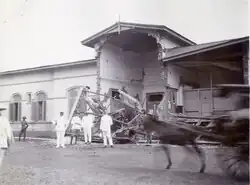The station building was initially built in Indies Empire style. The original building was partially collapsed due to an earthquake on 15 May 1923 and later was torn down and rebuilt due to safety hazard.[3] The only original part of the station that survives is the platform canopy.