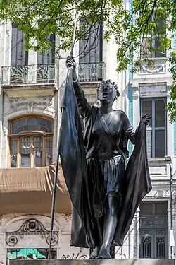 On 8 November 2022, a monument to María Remedios del Valle was unveiled on Plazoleta Castelao, in Buenos Aires. The monument included a statue in del Valle's image sculpted by Alexis Minkiewicz, in collaboration with Gisela Kraisman and Louis Yupanki.[12][13] The statue was 3D printed in resin and polyurethane lacquer and was 3.7 metres with the plinth and weighed 80 kilos. On the 1 September 2023, the statue of María Remedios del Valle was burned to the ground, in an act of vandalism condemned by the Ministry of Culture.[8]