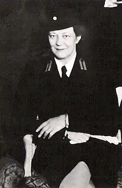 The outbreak of World War II caught Paulínyová in Bratislava, where she was posted as a correspondent for the American press. Narrowly evading arrest by the fascist regime, she left for London, where the Czechoslovak government in exile was located. In Britain, she was active in the Czechoslovak Red Cross, chiefly in the area of organizing relief for Czechoslovak prisoners of war captured by Germans, who otherwise received minimal support due to not being internationally recognized as combatants. Paulínyová managed to smuggle the aid for the captives raised through private donors by bundling it with the aid for British captives, who enjoyed international recognition, organized by the British Red Cross.[2] She also raised funds to support Czechoslovak students in the United Kingdom, who struggled to continue their studies without any support from home.[3]