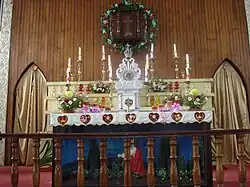 Mar Sleeva Syro-Malabar Church, Mapranam (Malayalam: മാപ്രാണം മാർ സ്ലീവാ പള്ളി), Thrissur is one of the few churches in Asia which has received the relic of the Holy Cross, part of the Holy blood of Jesus Christ and a piece of the towel used by Veronica to wipe the face of Jesus Christ, during the journey of the Passion, all donated from Vatican by the order of the Pope Leo XIII.[1][2][3] Believed to have been constructed in AD 928, it is one of the oldest churches not only in Kerala state, India, but also in India. North of it lies Karuvannur River, the Arattupuzha Temple and the churches of Pallissery and Panamkulam.