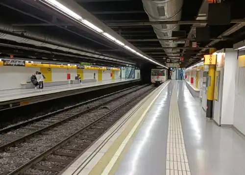 Maragall is a station in the Barcelona Metro network located at the meeting point of three different districts in Passeig de Maragall, Barcelona. It is an important interchange station between Line 4 and Line 5.