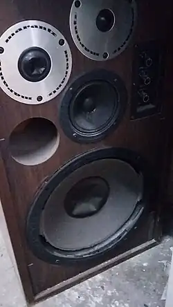 The woofer is 12 inches (30 cm) in diameter with a frequency response of 30 to 500 hertz.