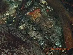 Marbled sculpin in the Pit River watershed coexist with Pit sculpin (Cottus pitensis) and rough sculpin (Cottus asperrimus). Upper Klamath marbled sculpin are one of three sculpin species in the upper Klamath region, which also includes slender sculpin (Cottus tenuis) and Klamath Lake sculpin (Cottus princeps). In addition to C.k. polyporus, the lower Klamath River hosts prickly sculpin (Cottus asper) and coastrange sculpin (Cottus aleuticus), although the lower Klamath marbled sculpin may only exist further upstream than these other two species. Moyle postulates that C.k. polyporus moved into the lower river after geohydrologic shifts in the Pleistocene caused increased spill over from Upper Klamath Lake and the eventual carving of a permanent channel connecting to the Klamath River.[2]