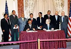 The protected natural areas were tripled on the island from 1.6 million hectares (6,200 sq mi) to 6 million hectares (23,000 sq mi) – ten per cent of the country's land surface – over five years.[12] In 2004 he established the Bureau Indépendant Anti-Corruption (BIANCO), leading to a decline in government corruption.[13][8] That same year, the International Monetary Fund agreed to write off half Madagascar's debt. In 2005 Madagascar became the first country to benefit from the Millennium Challenge Account, a new development fund managed by the United States.[14]