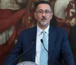 In 2022, Pittella, followed by his brother, left the Democratic Party after not being listed as a candidate for the 2022 Italian general election and joined the Action party led by former Democratic Party member Carlo Calenda.[20][21] Placed at the top of Action's list for the Senate of the Republic in the proportional quota in Basilicata, he was not elected.[22] For the 2024 Basilicata regional election, after division and dissent within the centre-left coalition,[23][24][25] he joined the centre-right coalition in support of the incumbent president Vito Bardi,[26] despite having been at the opposition,[27] which caused dissent with his brother.[28][29] In justifying his and the party's decision to support Bardi and join the centre-right coalition in an audio message, Pittella compared the behavior of the Democratic Party and the Five Star Movement towards Action, alleging vetoes,[30] to that of Jews during the Holocaust. He soon said that he was sorry about the comparison and apologized to anyone who felt offended by it.[31][32][33] In his written statement announcing Action's support for Bardi, alongside the Action Basilicata regional secretary Donato Pessolano, Pittella wrote that they shared "elements of his program on which to build an agreement", in particular the "relaunch of health and welfare, a reorganization and implementation of regional governance, the identification of strategies for development", which also evaluate the establishment of a sovereign fund against depopulation, "a strategy for culture that sees Matera as a beacon", and a fight against precarious employment, with a particular focus "in favour of agriculture and aiming for a high-performance governance of forestation".[34]