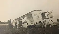 Since his youth he showed an adventurous spirit and great curiosity for technical innovations, soon developing an interest in the world of aviation. Between the end of 1909 and 1910, Serrazanetti became one of the first instructors, together with Pasquale Bianchi and Alessandro Cagno, at the newly established Cameri airfield. He made his first flight on an AVIS aircraft, built by a small company in Brescia, founded by the French engineer Clovis Thouvenot, who made biplanes under license from Avions Voisin, equipping them with an Isotta Fraschini engine. Serrazanetti bought one of these aircraft at the 1st Italian Aviation Exhibition, held in Milan on 15 November 1909, equipping it with a 50 HP engine. Taking off from the Cameri airfield on 1 May 1910, he ventured with his plane among the units of the 17th Field Artillery Regiment that were carrying out an exercise just outside the flying area; the aircraft's propeller suddenly stopped working and the aircraft crashed into a tree and was almost completely destroyed, but Serrazanetti was only slightly injured.[1][2][3]