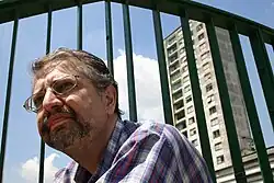 Marcelo Mirisola (born in São Paulo on May 9, 1966) is a contemporary Brazilian author.[1] He is usually known for his scatological, innovative, and comic writing style, and for his ingenious interplay between autobiography and fiction.[2] His literary production includes short stories, novels, chronicles, and theater pieces, and is influenced by authors like John Fante, Henry Miller, Charles Bukowski, Louis-Ferdinand Céline, and Marcia Denser, among others.[3][4] He has collaborated regularly for Brazilian magazines, newspapers and websites.[5] Mirisola holds a bachelor's degree in law, but has never practiced the profession.[6] In 2020 Mirisola won a prize from the Programa de Ação Cultural (PROAC) as a recognition for his outstanding body of work.