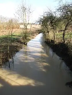 The ru du Cuivre (Copper stream) crossing the D 57 road, west of Marchais-Beton