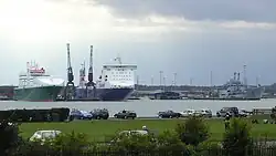 Marchwood Military Port was built here during World War II, which played a vital role in the Normandy landings.[7] The Royal Navy Ordnance Depot was where the famous Mulberry harbours were made.[3] The port continues to service Britain's overseas military interests.[7]