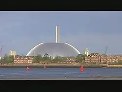 Despite being a village, Marchwood is the home of a refuse incinerator known as Marchwood Incinerator (the remains of a previous incinerator, closed in the 1990s were finally pulled down in 2012), a sewage works, a large military port and a natural gas fuelled combined cycle power station known as Marchwood Power Station.[8] replacing an older station which was dismantled during the 1980s. The 842 megawatt facility is one of the most efficient generators of electricity in the UK at 58% fuel efficiency. Until privatisation, Marchwood was home to one of the three principal research facilities of the Central Electricity Generating Board (CEGB), concentrating on heavy plant – the other facilities were at Leatherhead and at Berkeley.