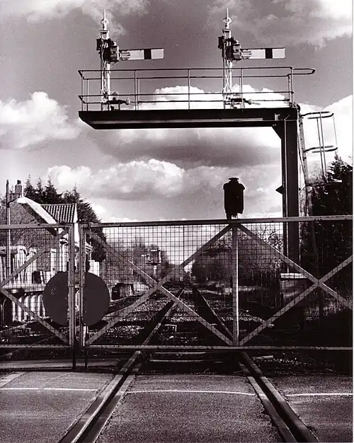 Marchwood railway station opened on the Fawley Branch Line beside Main Road on 20 July 1925. The station was closed by the Beeching Axe on 14 February 1966 and has remained closed since.[9] Freight trains still operate on the line and a set of manual level crossing gates are still used on Main Road. Hampshire County Council have agreed to fund a study into reopening the Waterside line between Totton and Hythe, with a stop at Marchwood.[10]