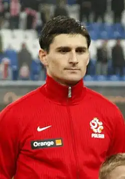 He made his first appearance in the Poland national team in a friendly against Serbia on 14 December 2008.