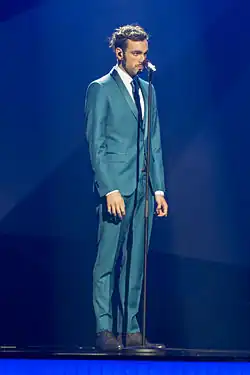 ![]() Mengoni performing "L'essenziale" in the first dress rehearsal of the final of the Eurovision Song Contest 2013 in Malmö, Sweden. | |