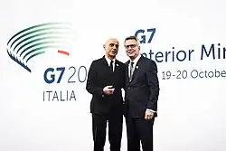 Marco Minniti (Italian pronunciation: [ˈmarko minˈniːti]; born 6 June 1956) is an Italian politician. A member of the Democratic Party, he served in the government of Italy as Minister of the Interior from 12 December 2016 to 1 June 2018. Previously, he was one of the most prominent councilors of former Prime Ministers Matteo Renzi and Massimo D'Alema.[1][2]