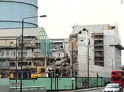 The building was in a serviceable state and had not reached the end of its life. It was used by Crisis At Christmas (as The Gate) to house the homeless over the Christmas 2013 period. Although the property was still available to let in December 2013 and classed as "modern TV studios/offices" by estate agent The Lorenz Consultancy, hoardings advertising Berkeley's replacement 'Vista' development were in place in January 2014. It is assumed that by this time internal soft-stripping had started.