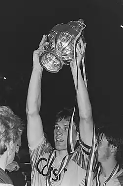 He was the top scorer in the league for four consecutive seasons, from 1983–84 to 1986–87, scoring 118 goals in 112 matches. In the 1985–86 season, he scored 37 goals in 26 league matches, including six goals against Sparta Rotterdam and five against Heracles Almelo, and won the European Golden Boot. He also scored the winning goal in the UEFA Cup Winners' Cup final against Lokomotive Leipzig in 1987. In total he scored 128 goals in 133 league matches for Ajax.[2] In November 1986 he scored his most famous goal in an Ajax jersey, a spectacular overhead kick against FC Den Bosch.[15]