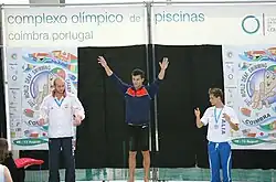Marcus Titus at awards ceremony at World Deaf Swimming Championships in Portugal