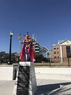 Mardi Gras Park is a municipal park in downtown Mobile, Alabama, US. The park is bounded by Government Street to the north, Royal Street to the east, Church Street to the south, and St. Emanuel Street to the west.[1] The park opened in November 2016.[2] It is located on the site of the old Mobile County Courthouse.[3] The park features statues representing the Mardi Gras tradition of the City, including Mardi Gras royalty, jesters, and Joe Cain (as his alter ego, Chief Slacabamorinico), who is largely credited with initiating the modern way of observing Mardi Gras and its celebrations in the city following the Civil War.[4]