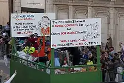 In 1867, following the end of the Civil War, Joe Cain revived the parade tradition in Mobile on Mardi Gras, riding in a decorated charcoal wagon, along with six fellow veterans.[17][2][10] That event has celebrated annually with Joe Cain Day since 1966.[17] The Joe Cain Day parade is held on the Sunday before Mardi Gras. The event's founder, artist and historian Julian Lee "Judy" Rayford, portrayed the "Chief" and in 1970 handed the features to the third "Old Slac", fireman J. B. "Red" Foster. Foster portrayed the "Chief" until passing the features in 1985 to historian, public relations professional and pastor, Bennett Wayne Dean Sr. Dean, as Old Slac IV, celebrated his 36th year under the feathers on Joe Cain Day in 2021.