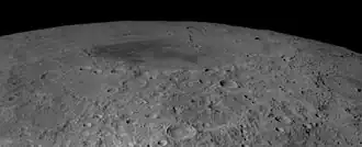The basin material is of the Nectarian epoch,[2] with the mare material being of the Upper Imbrian epoch (3.4–3.7 Ga).[3] The lighter gray area to the southeast of the dark mare material is a region of hills within the basin. The rim of this basin forms a mountain range that can be seen under oblique lighting conditions.