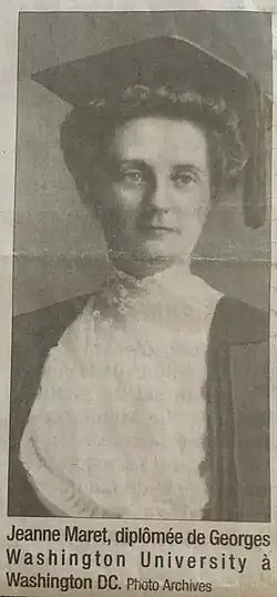 In the late 1800s and early 1900s, three French sisters, Mlles. Marthe, Louise, and Jeanne Maret, left their home in the village of Marignan (Sciez) in France close by Geneva, Switzerland, to teach. Louise taught in Russia, Jeanne in the Philippines, and Marthe (who became blind at age 18), in Washington, D.C.[2]