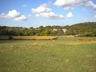 In the core of the anticline the top 20 m of Upper Jurassic (Kimmeridgian) strata are exposed — thinly bedded, cryptocrystalline, fossiliferous limestones (micrites). After a long hiatus follow 8–20 m of transgressive Cenomanian consisting of green, glauconitic marls rich in oysters and sandy, alveoline-bearing limestones. The Cenomanian is concordantly overlain by 55–65 m of Turonian strata divided into the nodular, chalky limestones of the Ligérian and the rudist-bearing limestones of the Angoumian. This is followed by 50–65 m of Coniacian — mainly hard, fossiliferous limestones. The sequence finishes with 45–60 m of chalky, glauconitic Santonian, in places rich in oyster debris.