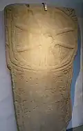 Part of a slab, possibly made to lie flat over a grave.
